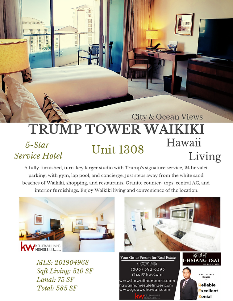 那麼夏威夷川普大樓 是一個不錯的選擇。 川普大樓位置在WAIKIKI 靠近海邊,5星的服務品質 非常合適商業人士使用